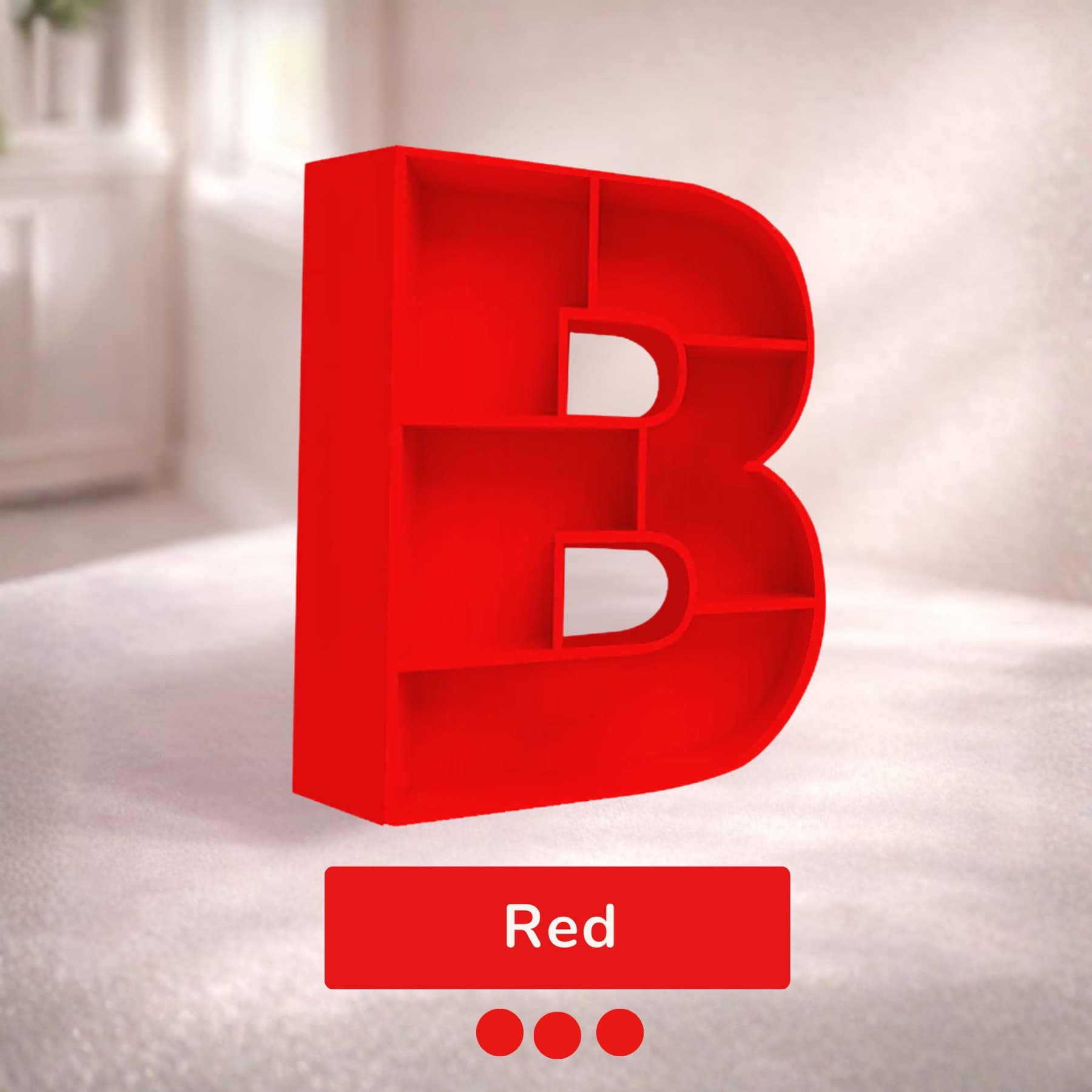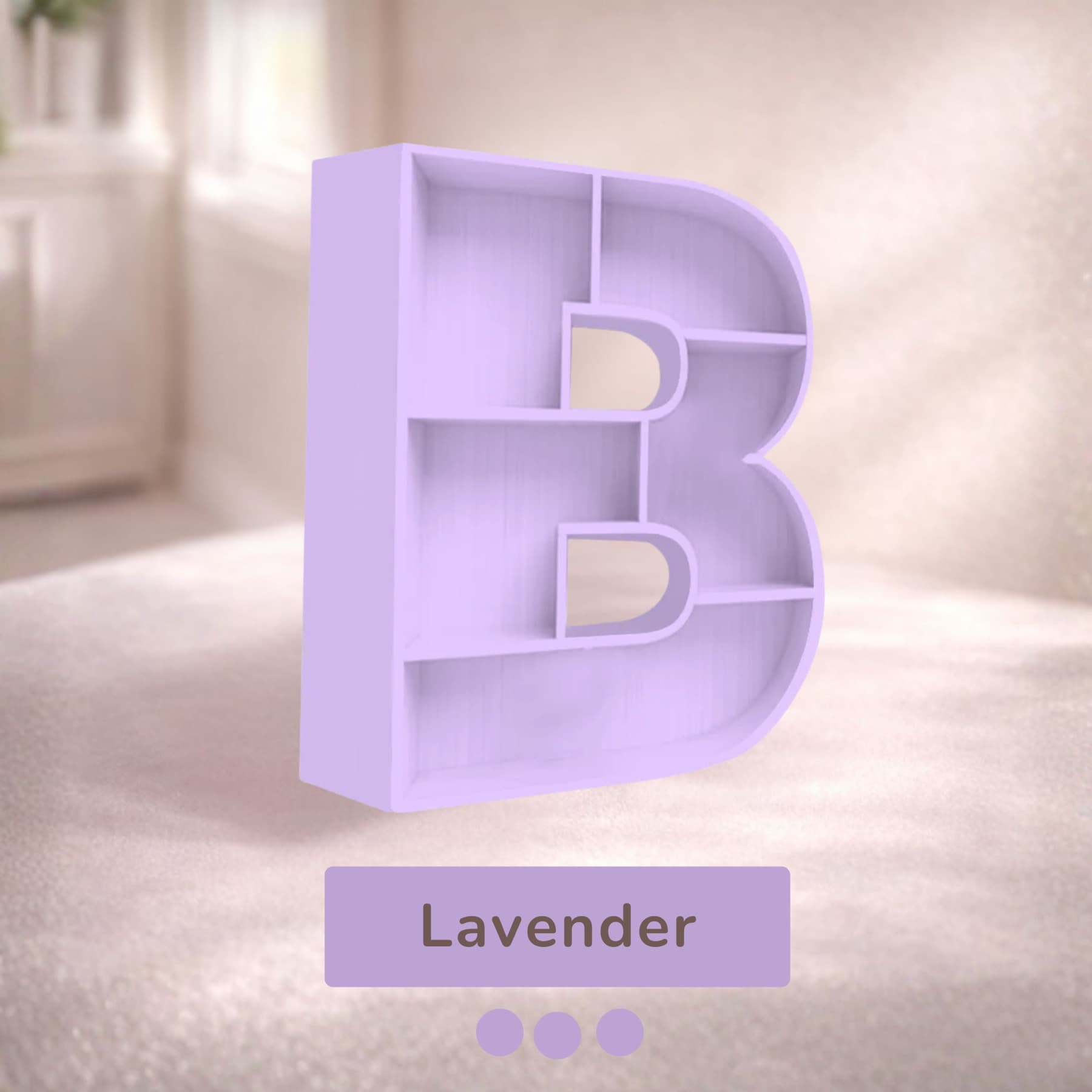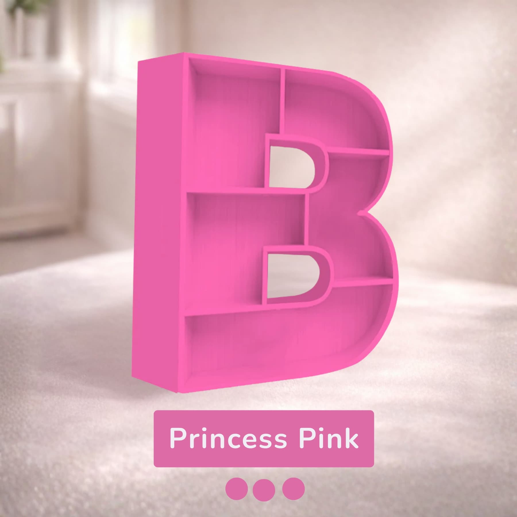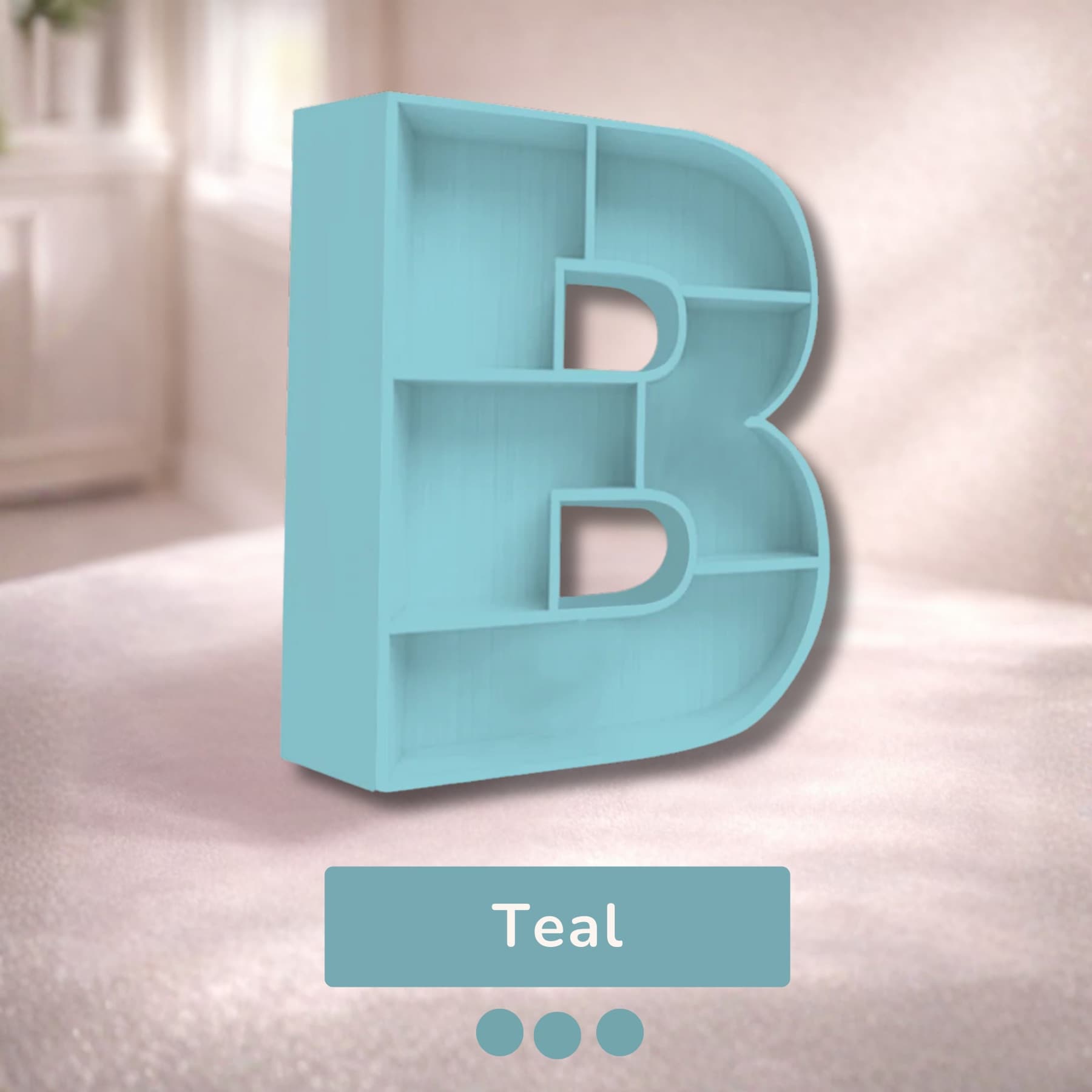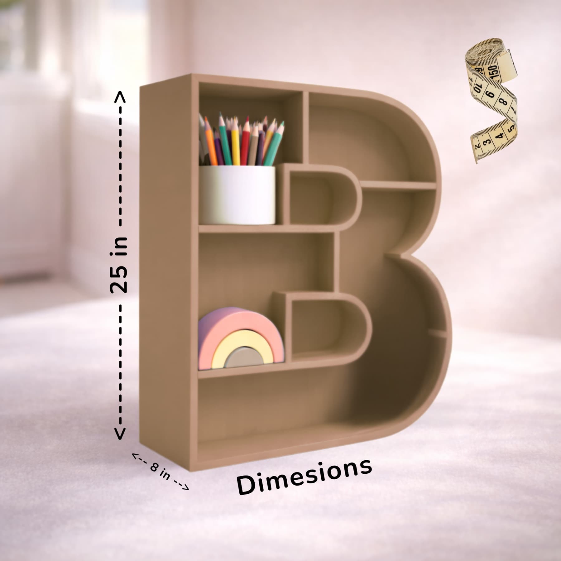 A beautifully handcrafted letter B shaped shelf, perfect for displaying books, toys, and keepsakes. Made from solid wood with a smooth finish, available in 8 stunning pastel colors. Each shelf is unique and adds a personalised touch to any kids' room or nursery.