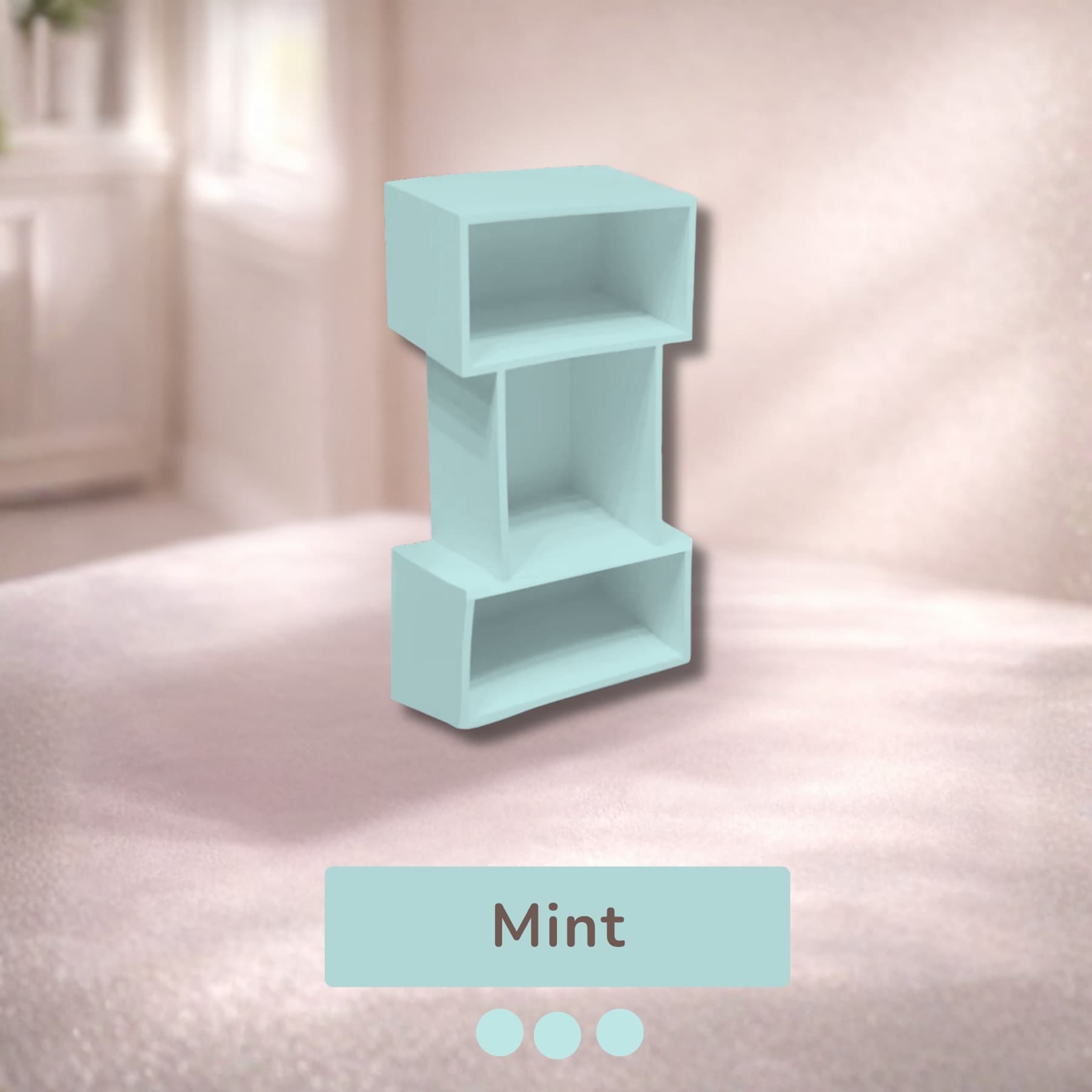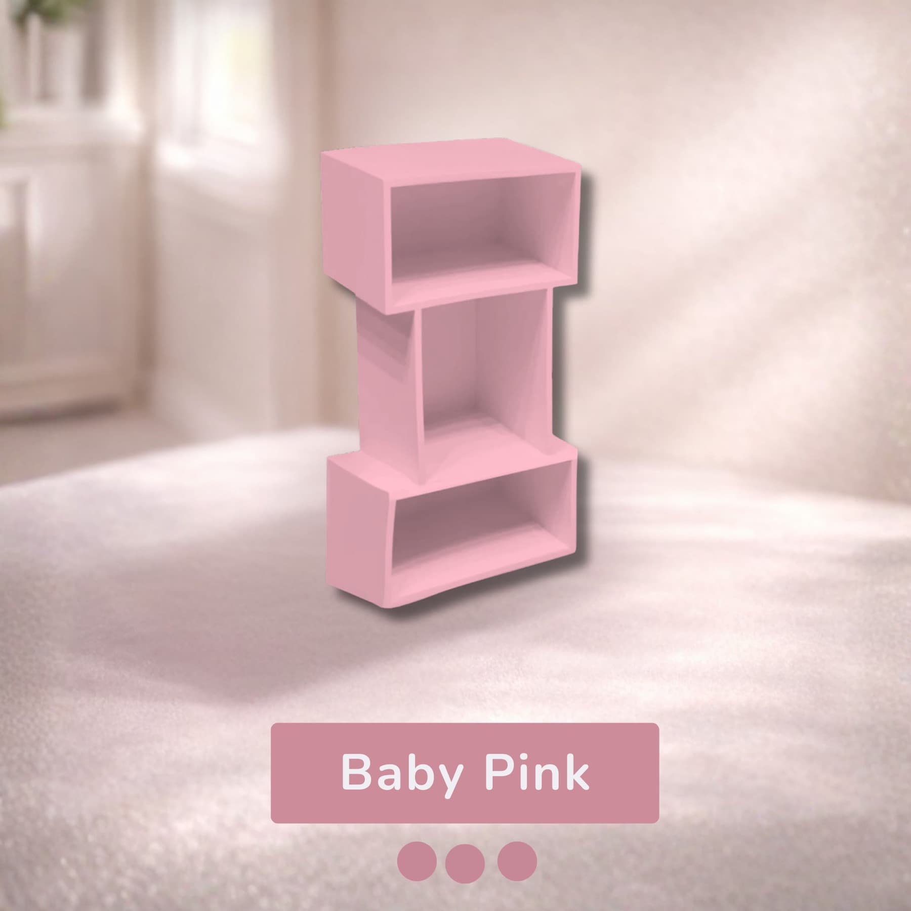 A beautifully handcrafted letter I shaped shelf, perfect for displaying books, toys, and keepsakes. Made from solid wood with a smooth finish, available in 8 stunning pastel colors. Each shelf is unique and adds a personalised touch to any kids' room or nursery.