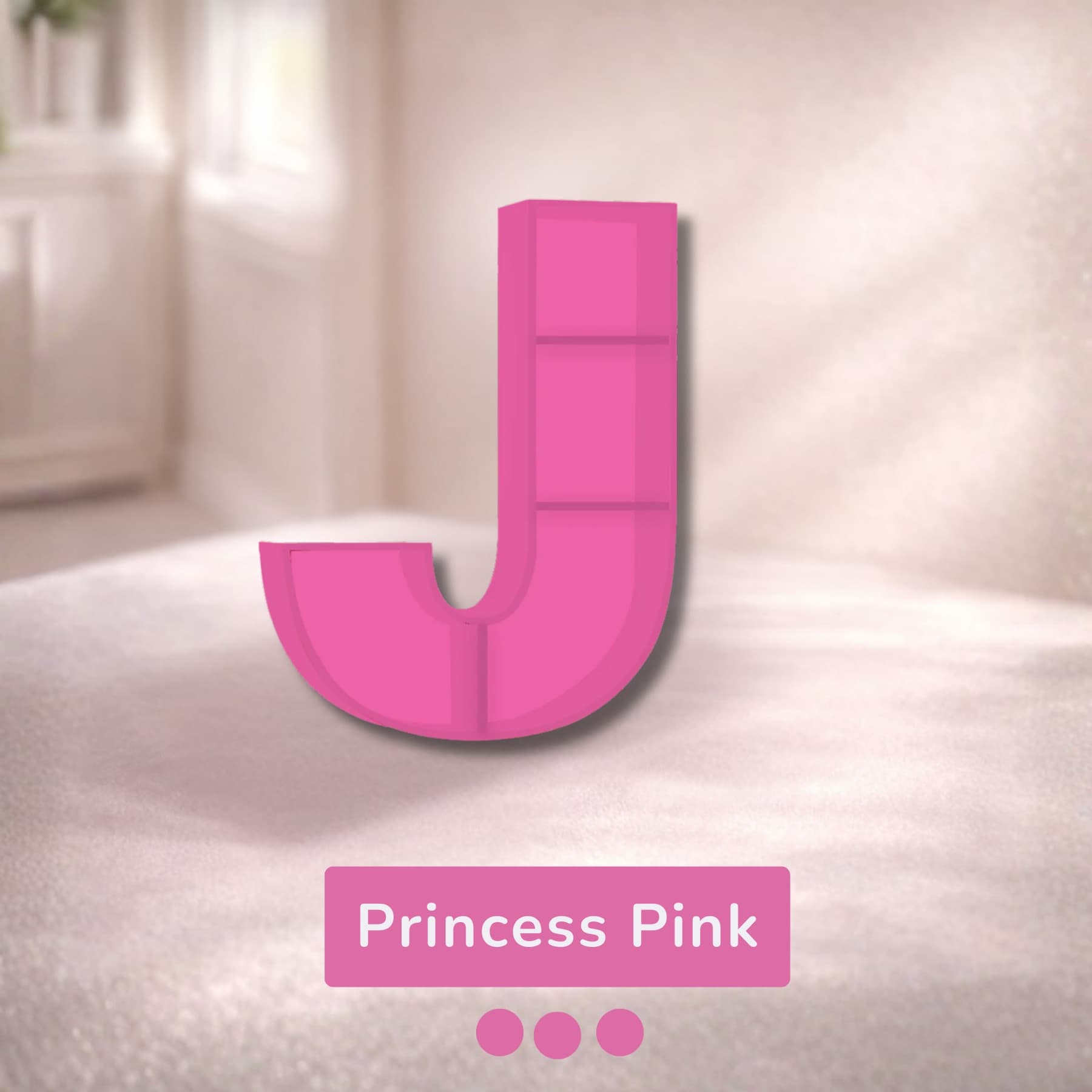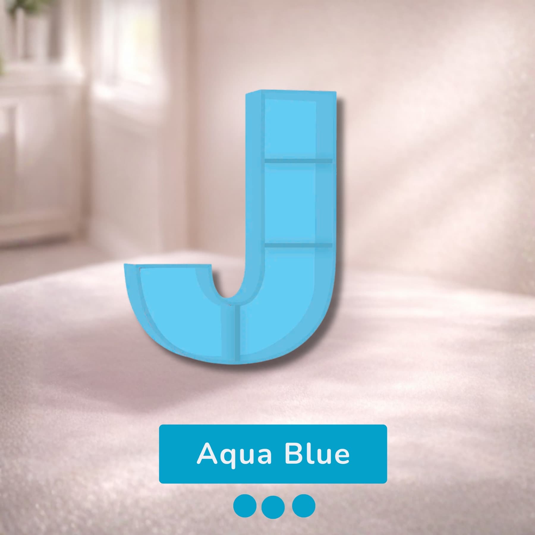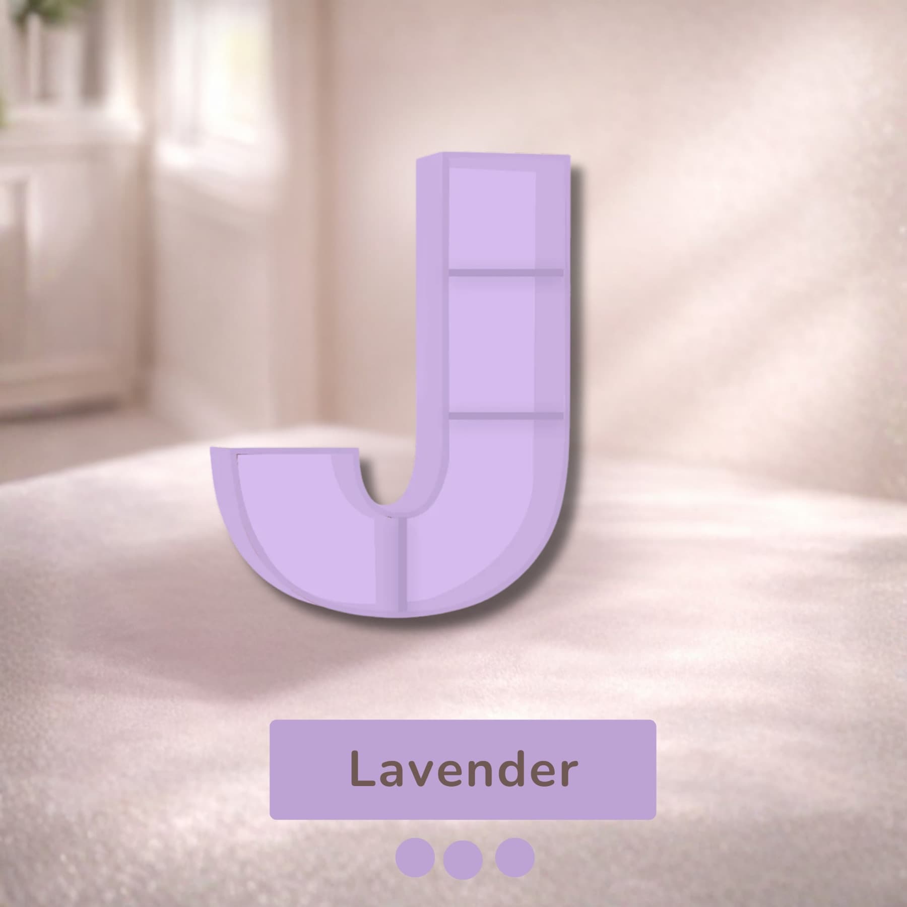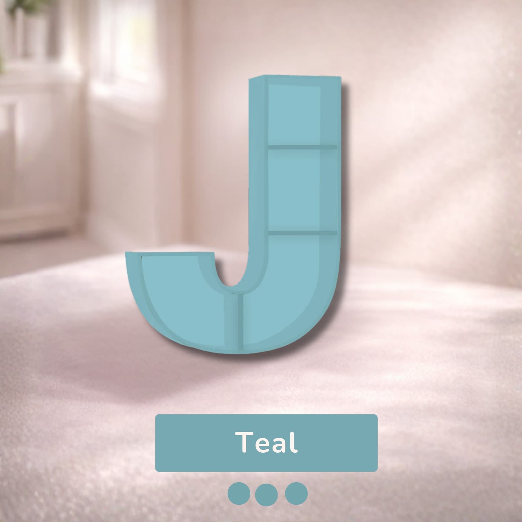 A beautifully handcrafted letter J shaped shelf, perfect for displaying books, toys, and keepsakes. Made from solid wood with a smooth finish, available in 8 stunning pastel colors. Each shelf is unique and adds a personalised touch to any kids' room or nursery.