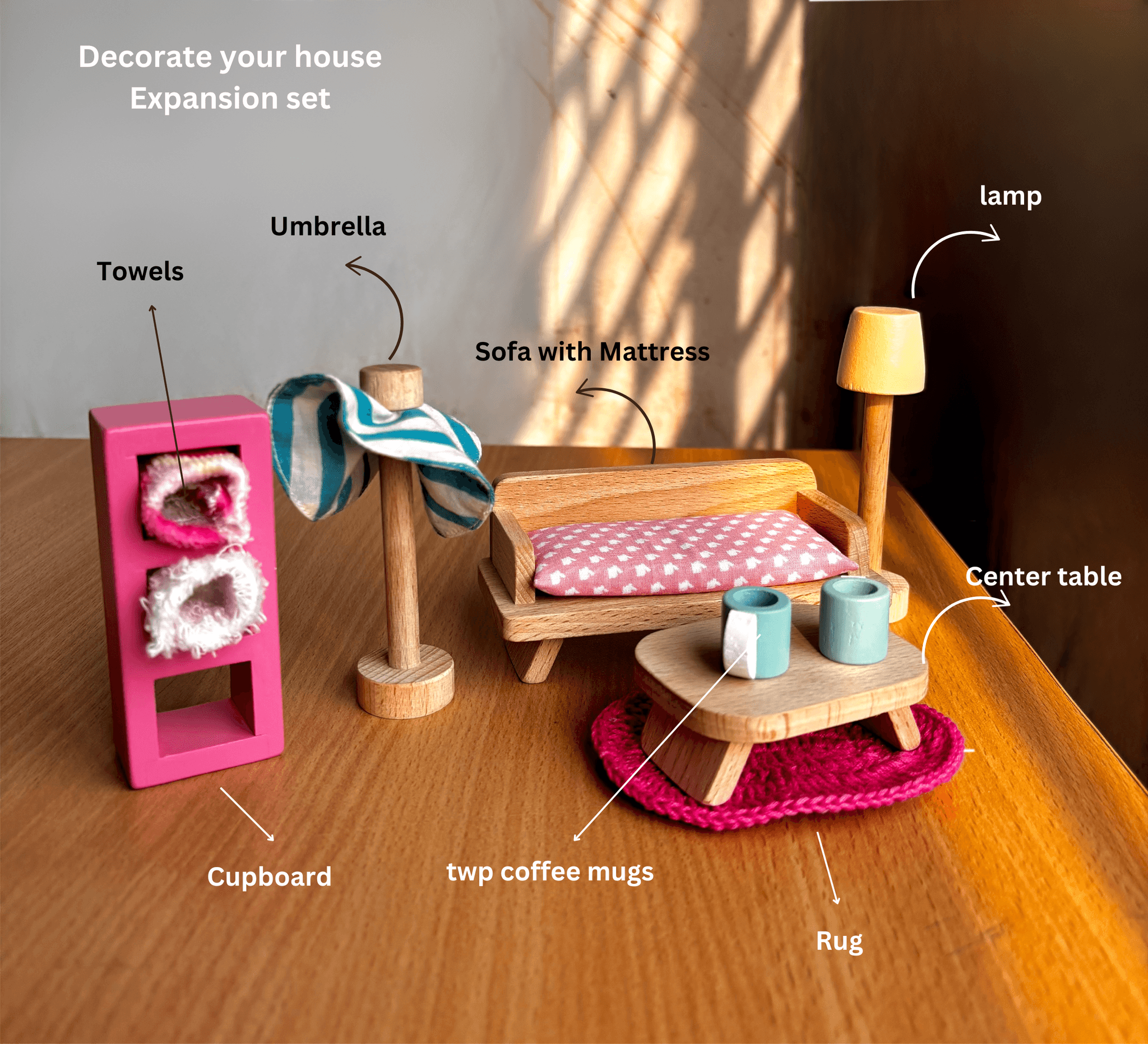 - ✓Interior furnished with bed, sofa, tables, crochet carpet, and more